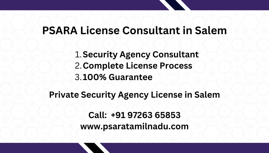 If you’re planning to start a security business, seeking assistance from a PSARA License Consultant in Salem can simplify the process and ensure compliance.